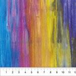 Batik fabric featuring a vertical painted pattern going from orange, to yellow, then pink.